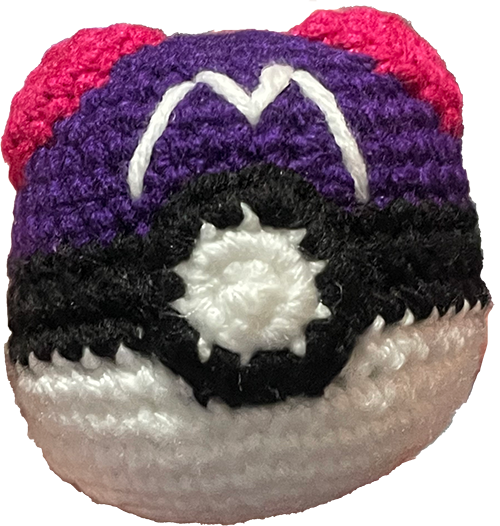 My Katsucon 2025 purchases! I got the Cyndaquil to replace the pastel Cyndaquil keychain I had lost; I got the small Treecko because the moment I saw him I had to have him (he's very small and fits in my palm), and it was a good thing because apparently the vendor had special-ordered it for a customer but then the customer had decided they didn't want him so he needed to be adopted; the sitting Gengar was also a I have to have him moment but with less sentimentality attached; and I got the winking Jigglypuff because I realized I didn't have any small Jigglypuff plushies and the fluffy winking one is super cute. And a crocheted Masterball, as a testament to this site.