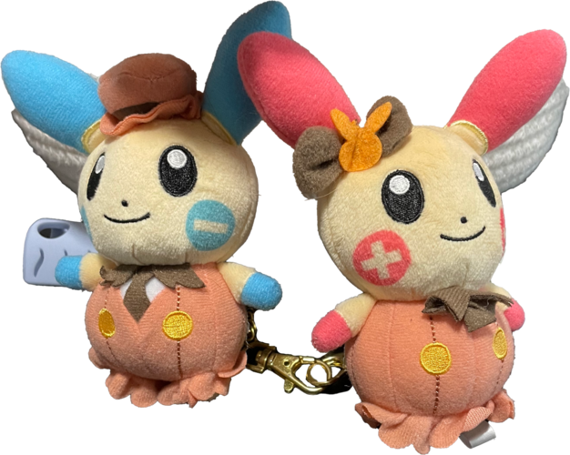 Ditto versions of some Pokémon. I love Ditto-styled Pokémon plushies, and I'm particularly fond of my Gengar/Clefairy pair here.